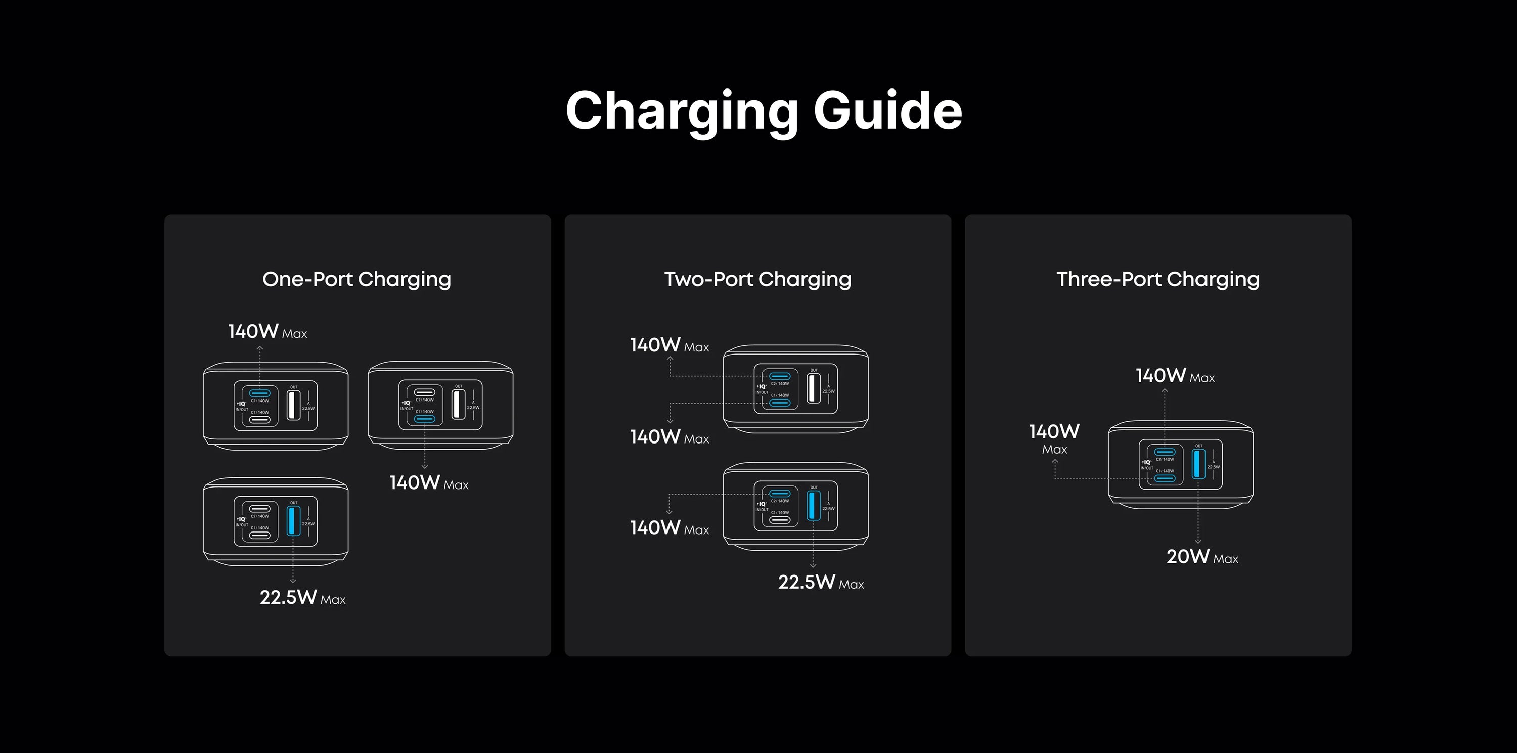 Supports 250W Max Dual-Port Fast Recharging