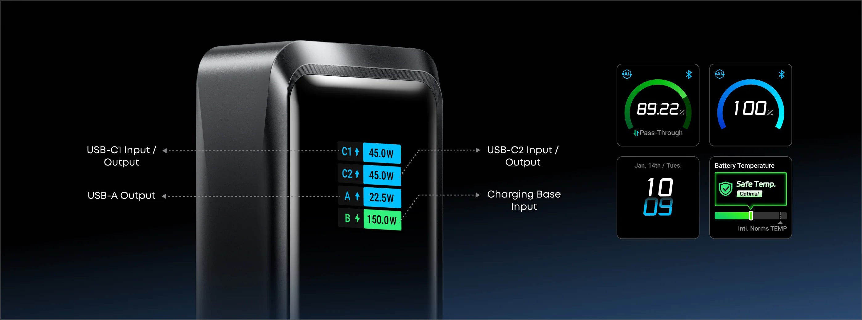 Recharge faster, wait less with up to 250W max input using dual USB-C ports