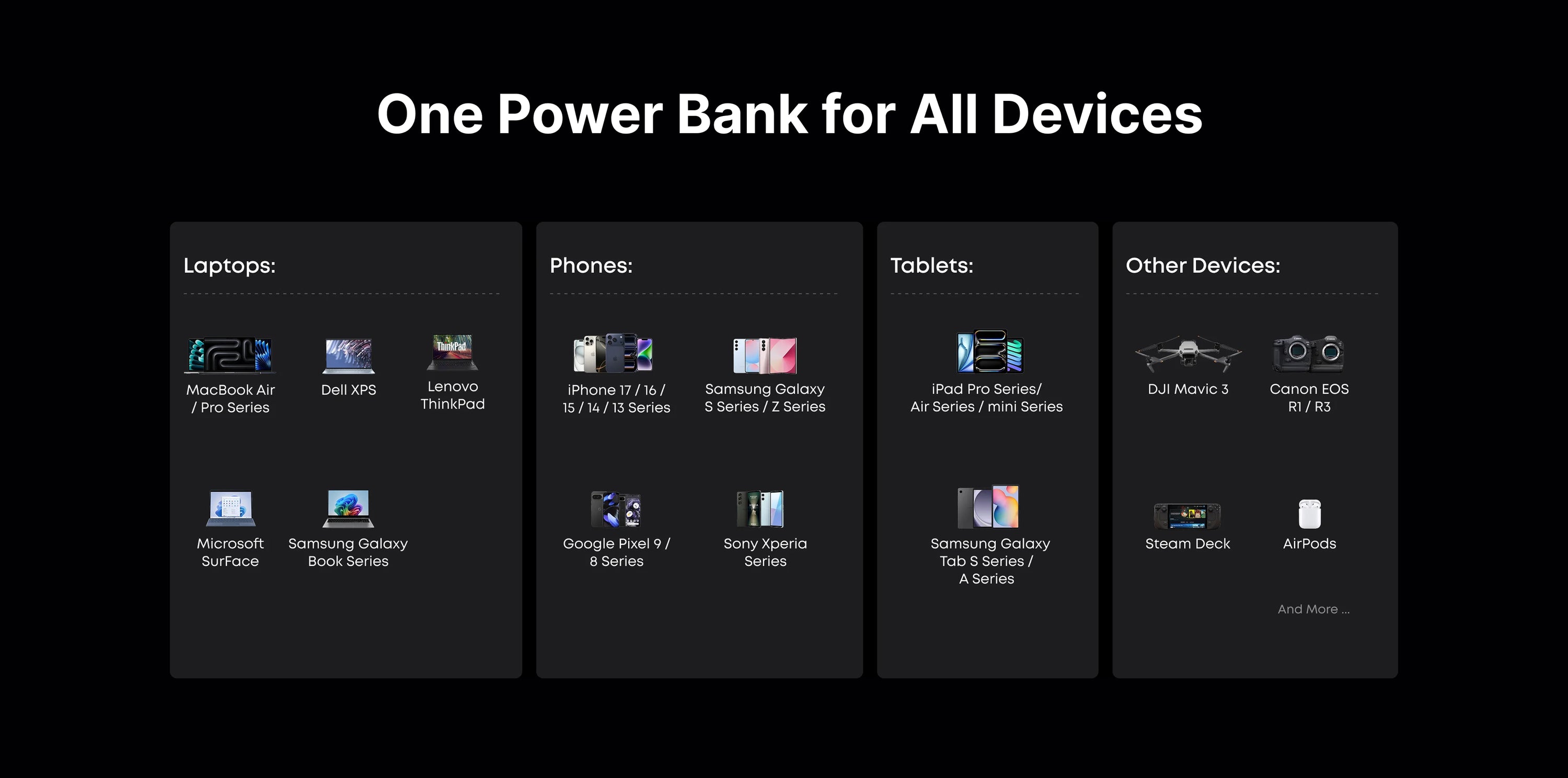 Power three devices at once with up to 300W total output for laptops, tablets, and phones