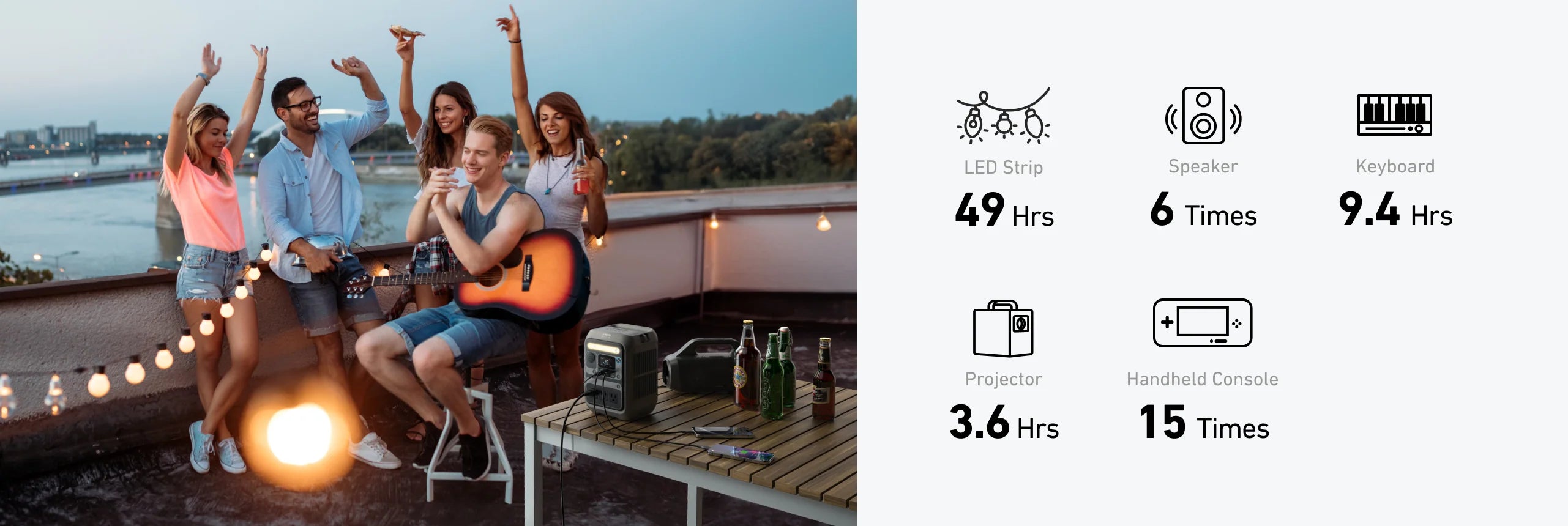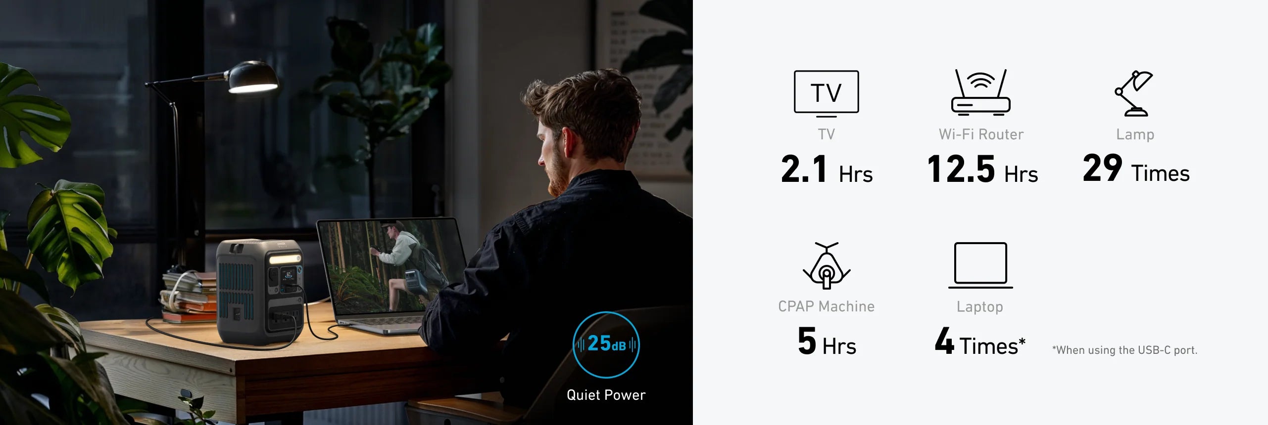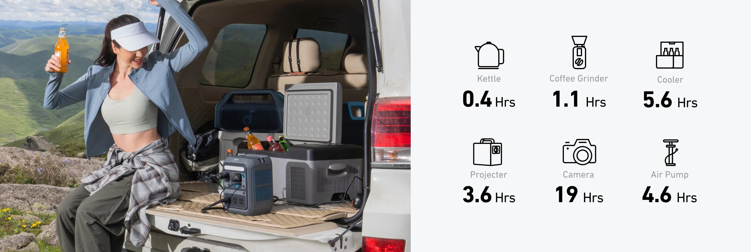 Recharge your way, anywhere: Top up via wall outlet, car, compatible solar panels, or USB-C PD.