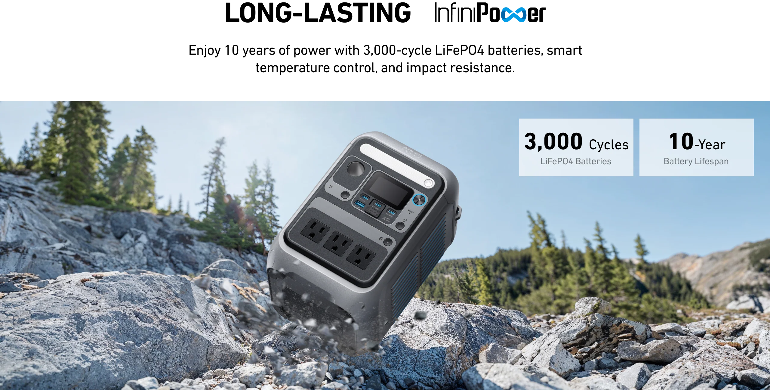 Built for the long haul: LiFePO4 battery rated for 3,000 cycles, smart temperature control, and 5-year warranty.