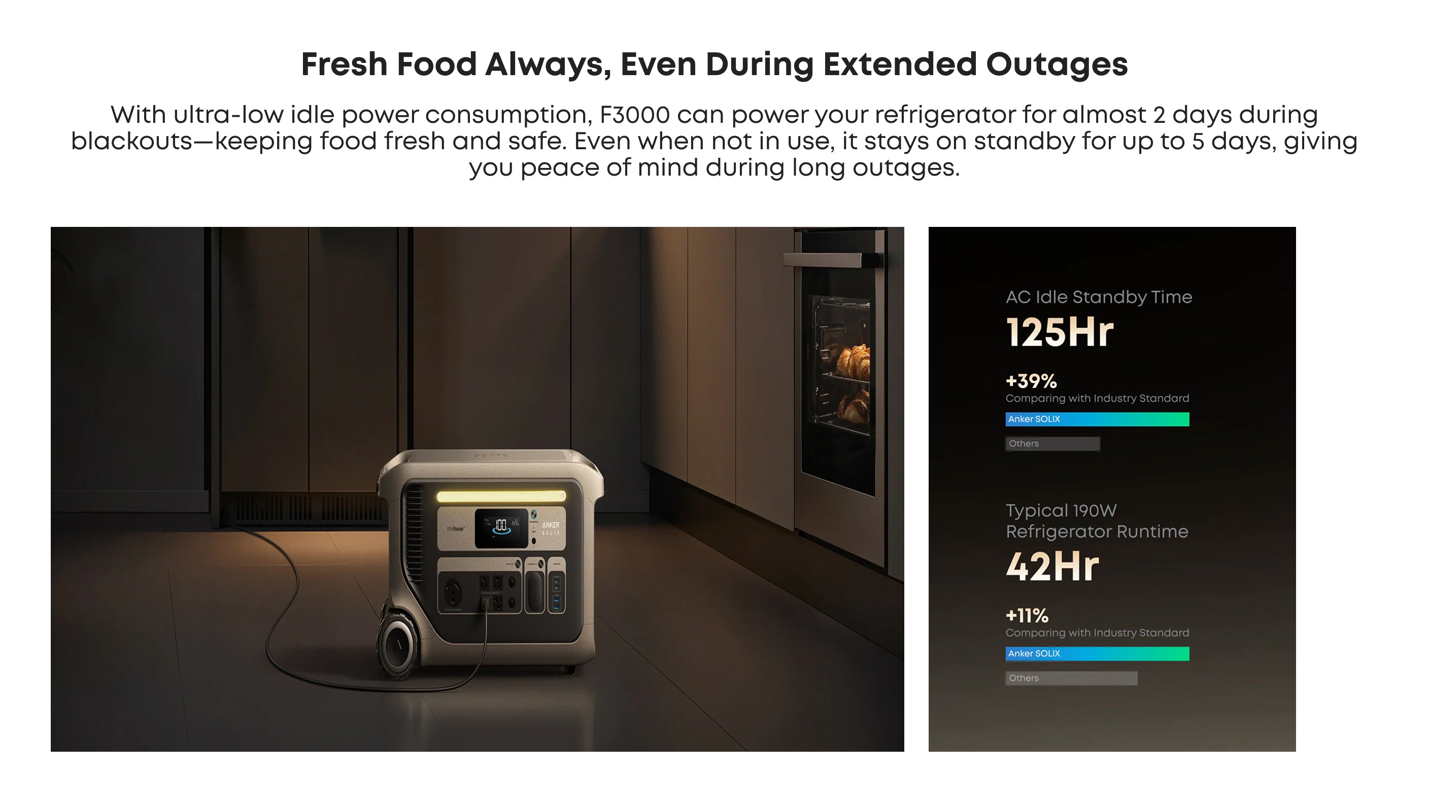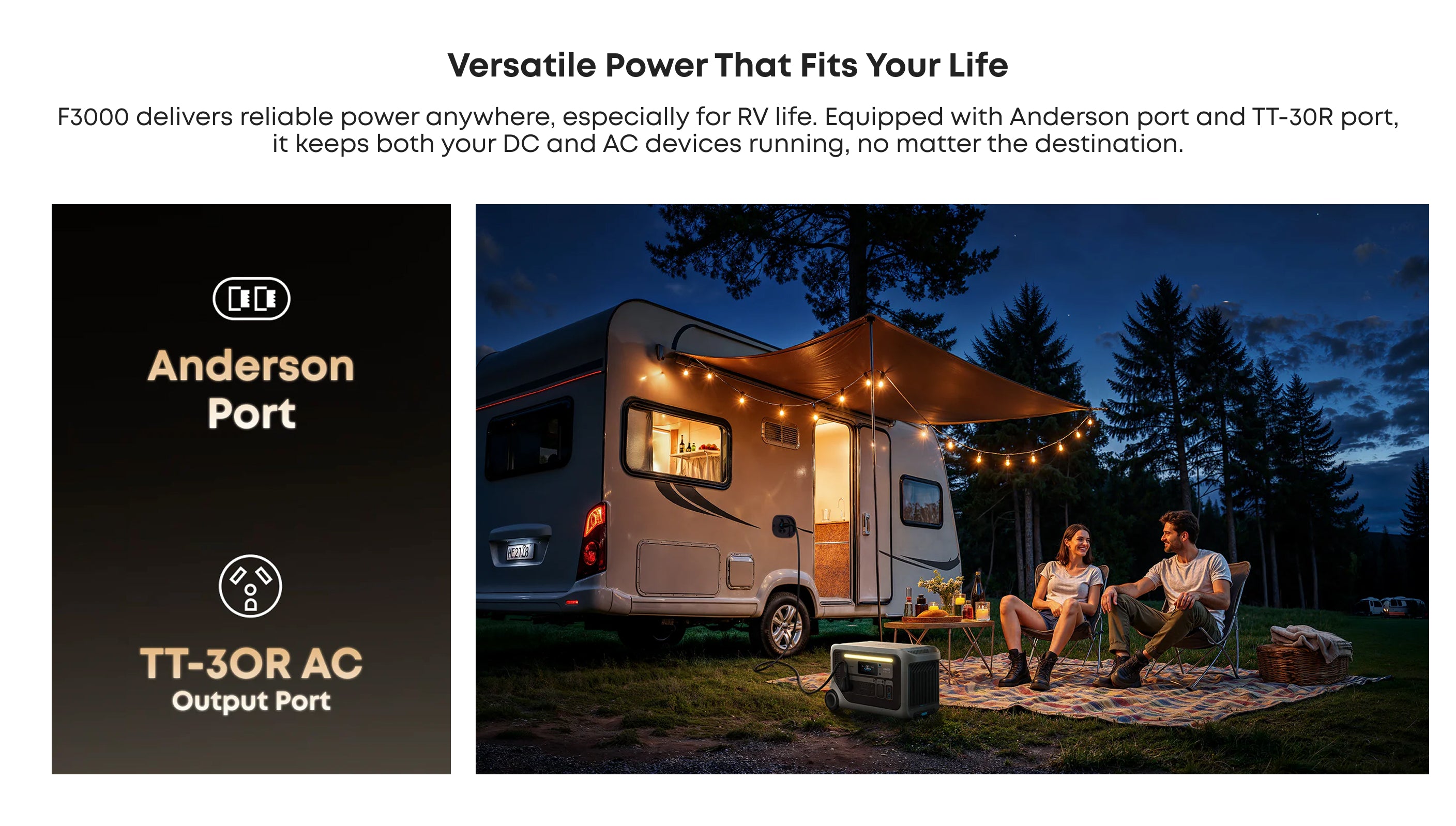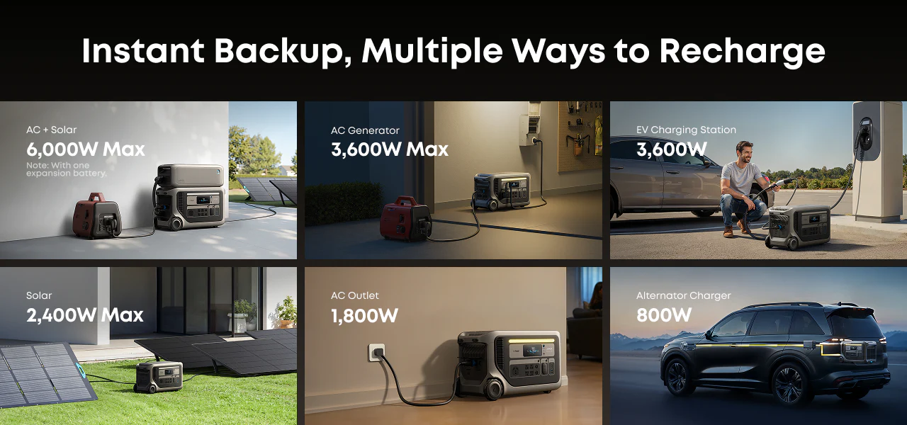 Its ultra-low idle power consumption maximizes every stored watt, while 2,400W solar input enables fast, sustainable recharging outdoors. For heavier demands, pair two units to unlock 240V output. Built for long-term energy independence, F3000 helps you stay prepared, reduce grid reliance, and save on electricity without compromising performance.