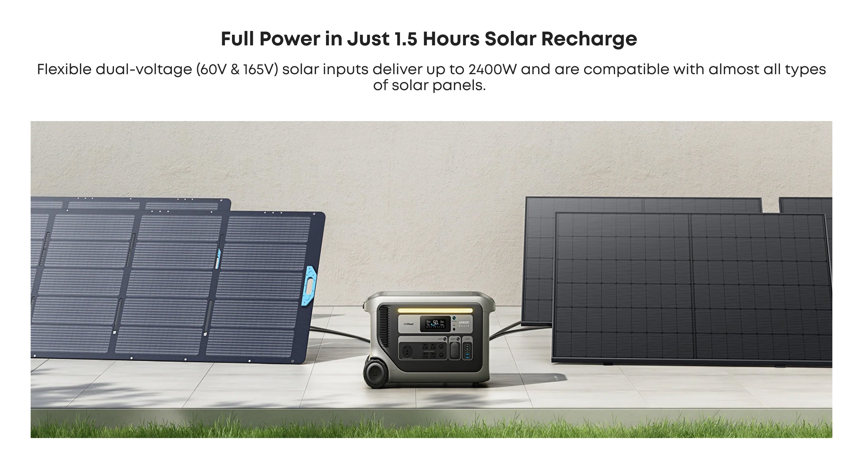 Recharge faster off-grid using up to 2,400W solar input with flexible high- and low-voltage solar ports