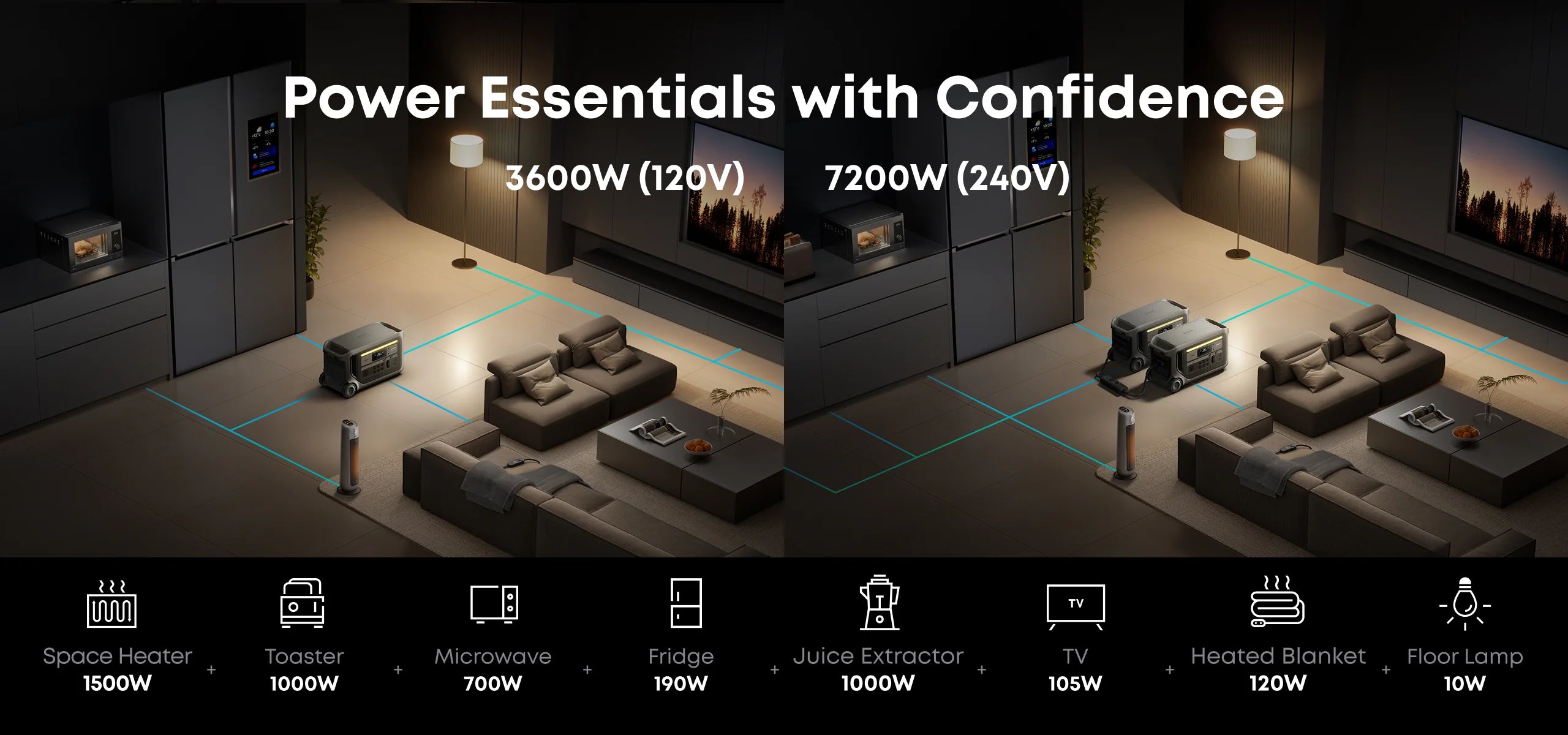 Run full-power appliances during outages with 3,600W pass-through charging that keeps devices on while recharging