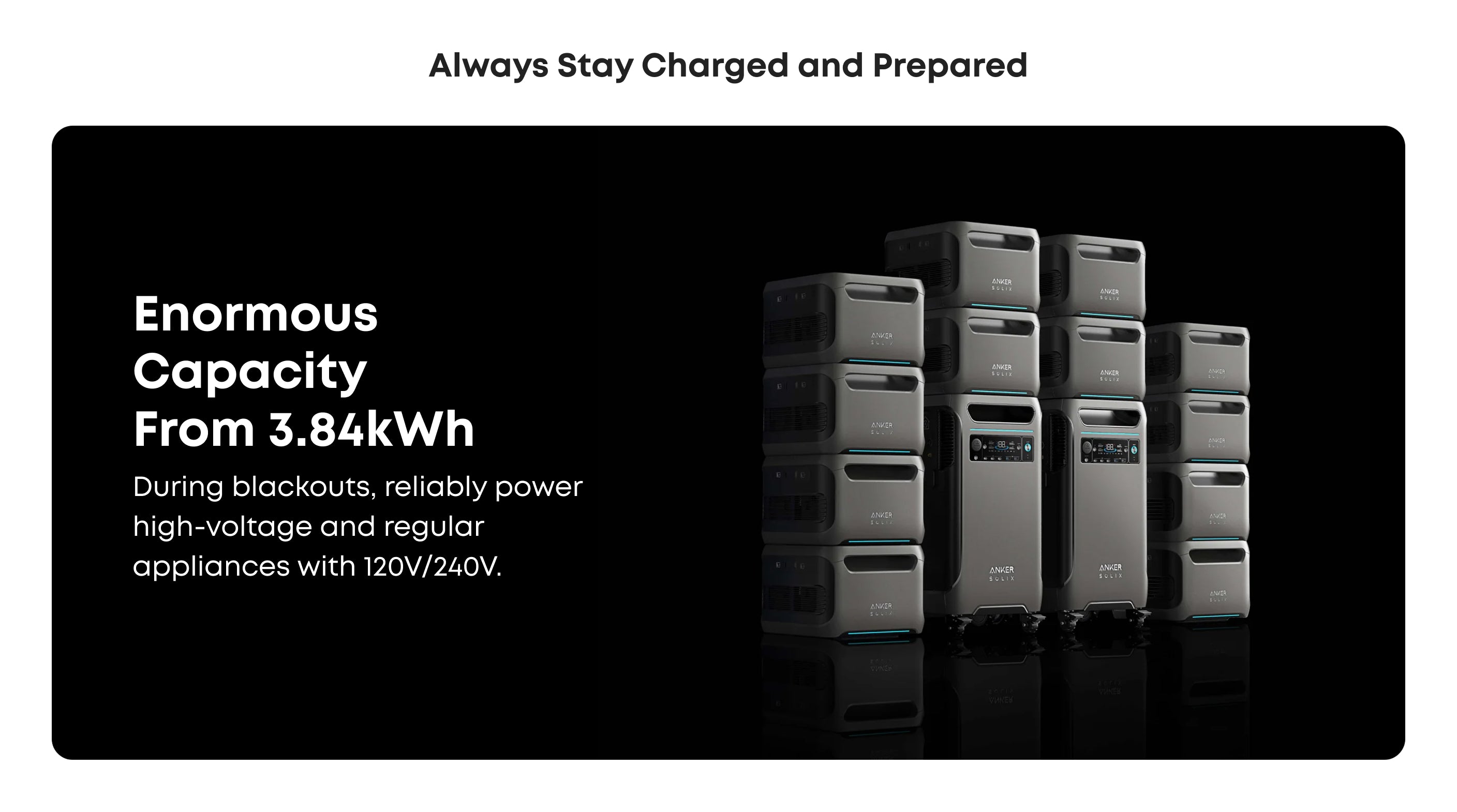 Power a full household with confidence – Start at 3.84kWh and expand up to 26.9kWh for long outages or extended off-grid use.