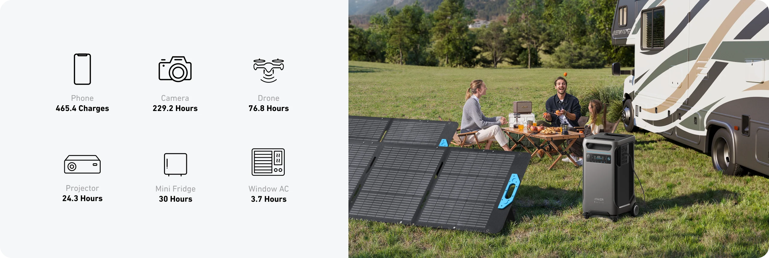 Run any appliance without workarounds – True 120V/240V support with up to 6,000W AC output handles dryers, pumps, and large tools.